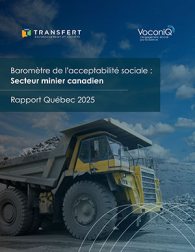 Le Baromètre de l’acceptabilité sociale : secteur minier canadien (2025) est une initiative de Transfert Environnement et Société et Voconiq. Il offre le portrait le plus exhaustif et rigoureux de la façon dont les Canadien·nes perçoivent le secteur minier : son importance économique, ses impacts environnementaux, sa légitimité sociale et sa fiabilité. Cette publication survient à un moment où le pays est confronté à une demande mondiale croissante en minéraux critiques et à des attentes grandissantes en matière de durabilité.