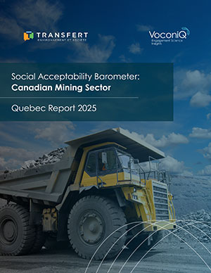 Transfert Environnement et Société oversees the deployment of the Social Acceptability Barometer in Canada, in partnership with Voconiq, with the objective of providing a rigorous national assessment of social acceptability in the mining sector. Concretely, Transfert designs and implements the methodology and then translates the results into strategic insights that support decision-making.This expertise is reflected in particular through: